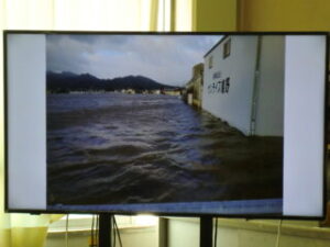 東日本大震災の映像を見た後、小学校付近で平成29年に水害を受けた映像もみせてもらいました。