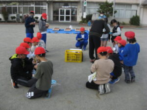 やきいも大会が終わってからも、残りのお芋を焼いたり、火の始末をしたり、まちづくり協議会のみなさんには遅くまでお世話をおかけしました。下校するために横を通った子どもたちの中には、さようならのあいさつに加えて、