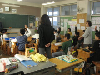 みんなは日本語をどうやっておぼえましたか?という質問に対して手を挙げています。