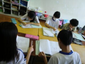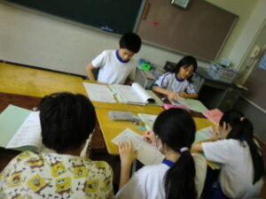 話しあいの後、当番の掲示物を作っていました。短時間できれいに仕上がりそうです。