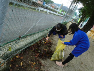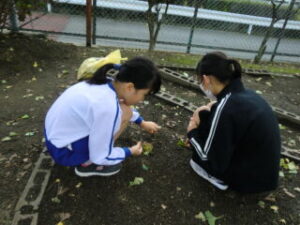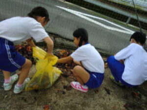 水やり・落ち葉拾いの当番を決めて、さっそく運動場の落ち葉を集めてくれました。