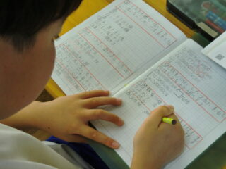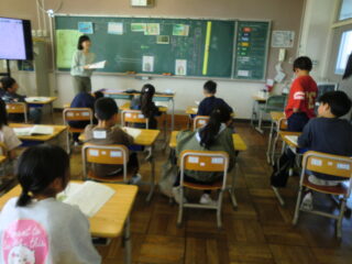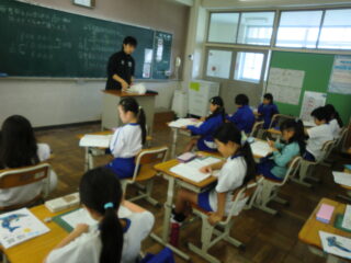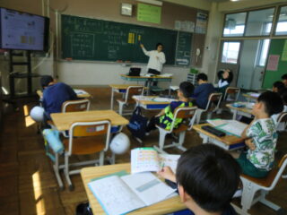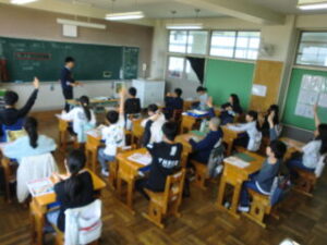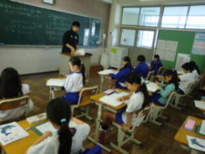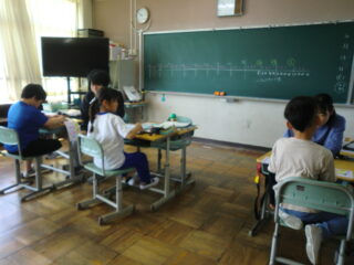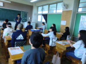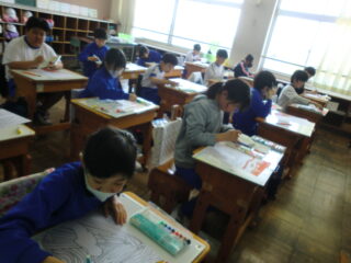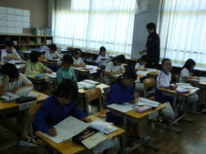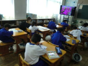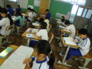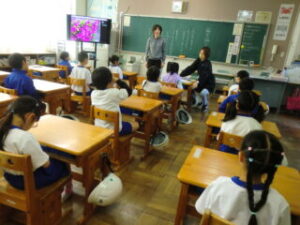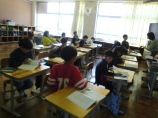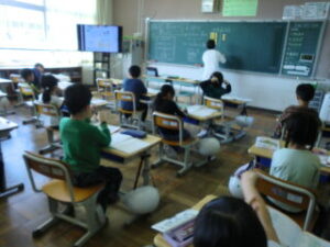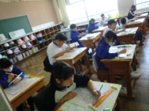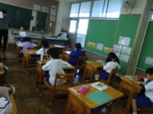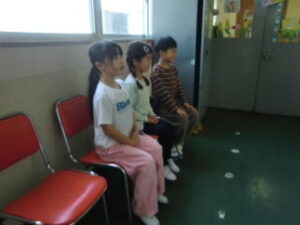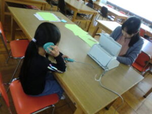 チャイムが鳴ると2限目は聴力測定です。静かに待っていました。