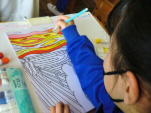 名画ムンクの「叫び」に着色していました。完成が楽しみです。