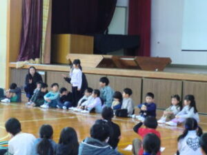 それから1年生が自己紹介をしました。好きなものはポケモンが多かったです。ケーキ、すみっこくらしなどもありました。好きな上級生を言ってくれた子もいました。
