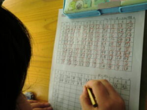 〈3年〉算数…テスト直しをした後、100マス計算です。