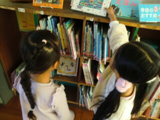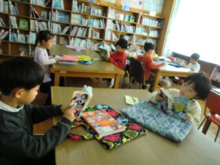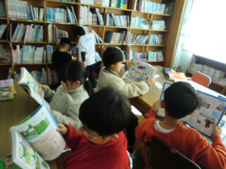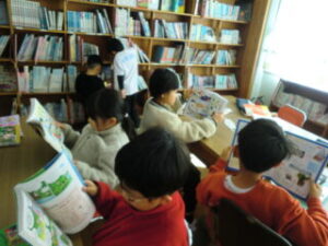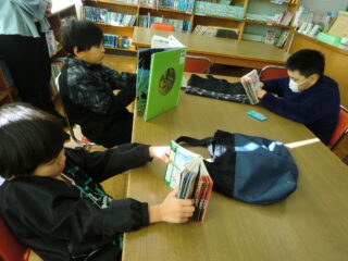 〈1年〉国語…冬休みに読む本を2冊選び、読書をしていました。