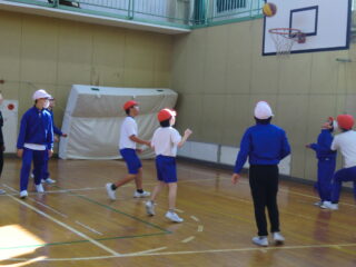 〈5年〉体育…バスケットボール。男子が分かれてゲームをしていました。