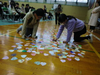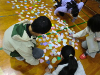 休憩時間に何人もが進んでハートを片づけてくれました。林さんに話しかけに行く子もいました。