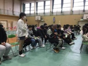 今年度は開業助産師の林みち子さんを講師にお招きし、「生きてるだけで百点満点!~しあわせな大人になろう~」を演題に講演をしていただきました。