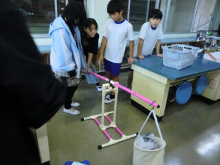 ホーム > 2025年度 / 学校活動の様子 R7〈6年〉理科 てこのはたらきとしくみ 理科室に新しい備品が届きました。6年生で使用します。 教科書にあるものよりも機能がよく、わかりやすいので、実験にも熱が入ります。 20日(月)の様子です。まずは、大事な用語を押さえ、実験とその後のまとめ方を確認します。 そして班ごとに実験。 ふりかえりとして3つ以上「気づいたこと」をかいて提出しました。 次の理科の時間が楽しみです。 シェアする Twitter でシェア はてなブックマークに保存 LINE でシェア Facebook でシェア Pocket に保存 Feedly で購読 関連投稿 学校活動の様子 / 2022年度 児童会・委員会 2024年度 / 学校活動の様子 6年 応援します!! 中原の星!!パリ五輪代表 川端選手!! 学校活動の様子 / 2022年度 野外活動④ 学校活動の様子 / 2022年度 運動会② 学校活動の様子 / 2023年度 3年 算数 「きょり」や「道のり」ってなんだ?? 学校活動の様子 / 2021年度 学級園(2年) 前の投稿 R7〈5・6年〉後期委員会