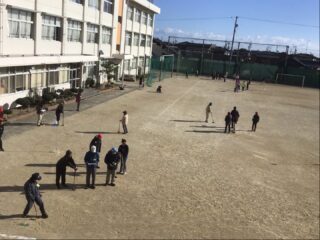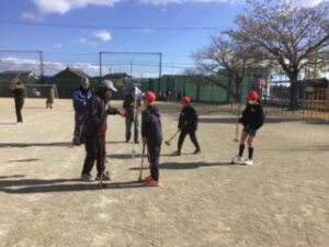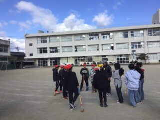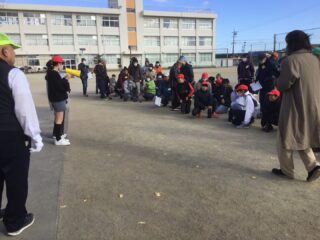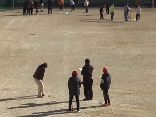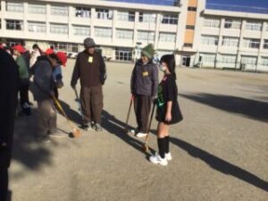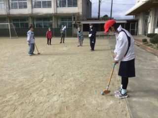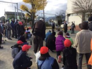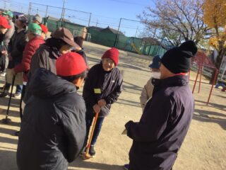 6年生の司会で学級委員、長寿会会長太田さん、ルール説明の越山さんのお話の後プレー開始です。