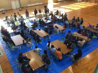 午前中6年生と長寿会42名の方々で異世代交流会がありました。
