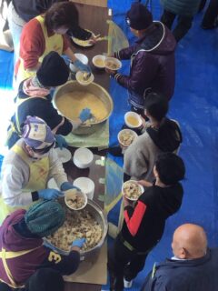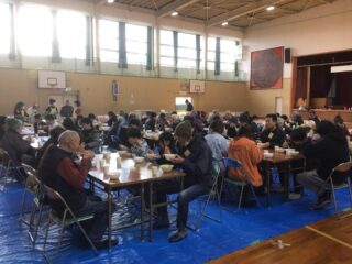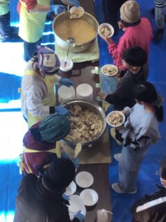 後半は地域の方々が作ってくださった味ご飯とお吸い物、ミカンをいただきます。