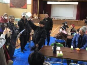 それからグランドゴルフの結果発表です。ホールインワン賞が6年生2人、長寿会さん5人もみえました。全員が何らかの賞をいただきました。