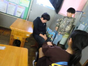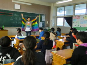 しんみりと話に聞き入っていた子どもたちが、終盤にかけて好きな漫画を聞いたりして「幸(こう)ちゃん」と親しく話せるようになっていました。