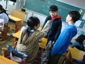 嬉野中学校区では、小学校高学年としてめざす子ども像に「互いの思いを共感的に受けとめ、支え合い、身の周りの問題解決に向けてともに行動できる子ども」を挙げています。