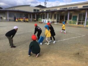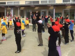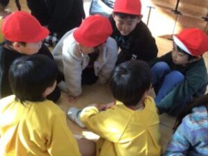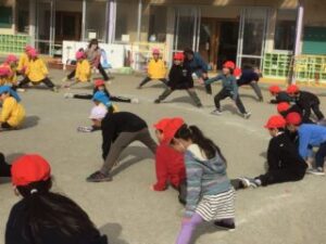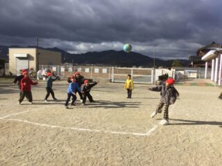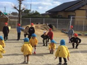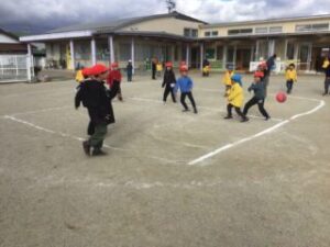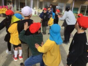 年長さんも1年生も元気よく仲よく遊びました。楽しかったね!