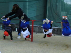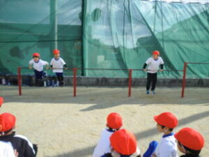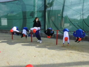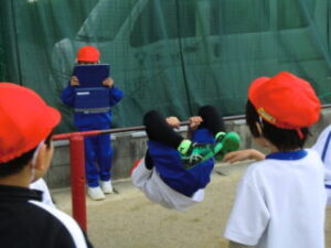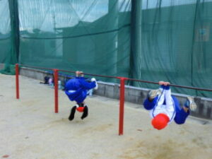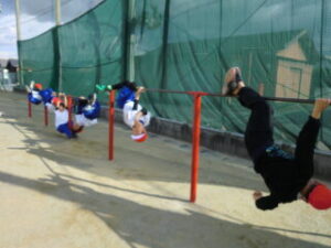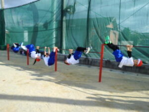 1年生です。体操の後はてつぼうをしていました。2限目の様子を紹介します。