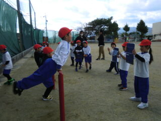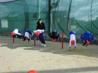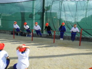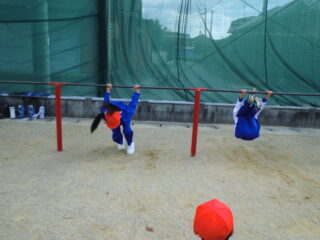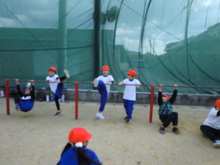 1年生です。体操の後はてつぼうをしていました。2限目の様子を紹介します。