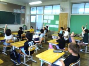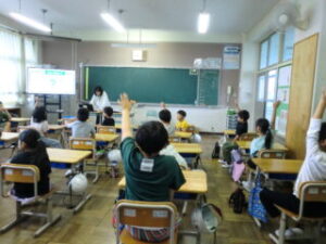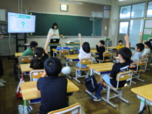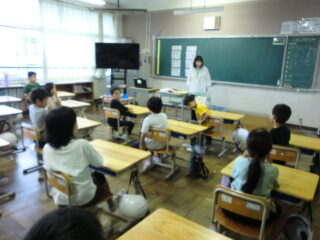 2限目に2年生が栄養教諭の横田先生に食育の授業をしていただきました。
