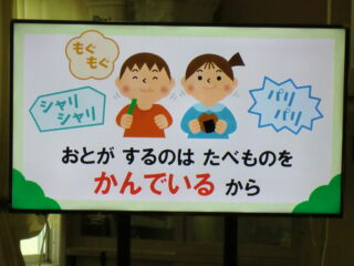 始めに食べ物をかむ音を聞いて何を食べているのか考えました。