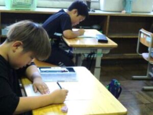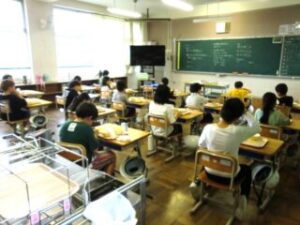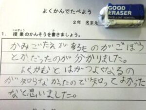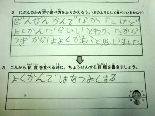 給食にはかみごたえのある食べ物があります。…ごぼうとか小魚とか…。