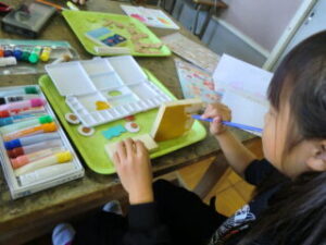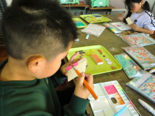 ホーム > 2025年度 / 学校活動の様子 R7〈3年〉図工 くぎうちトントンの色ぬり 昨日5限目に、3年生は図工の授業でした。 みんな集中しています。 この時間は3回目です。 ①下絵と色ぬり②パーツをくりぬく・色ぬり③つづきの色ぬりです。 約1時間後、空席がちらほら。 できた子から分かれてパレットを洗っていました。 これからくぎうちをするのが楽しみです。 シェアする Twitter でシェア はてなブックマークに保存 LINE でシェア Facebook でシェア Pocket に保存 Feedly で購読 関連投稿 学校活動の様子 / 2023年度 2年 朝の会 ばっちりです!! 学校活動の様子 / 2022年度 野外活動② 学校活動の様子 / 2023年度 5・6年 デイキャンプ 夜の集いDAY! 2024年度 / 学校活動の様子 4年 朝の会の様子をご紹介!! 学校活動の様子 / 2023年度 やきいも大会!! ~やきいも編~ 2025年度 / 学校活動の様子 R7〈6年〉異世代交流会 前の投稿 R7 〈4年〉食育 よりよく成長するための食事 次の投稿 R7〈6年〉人権フォーラムに向けて