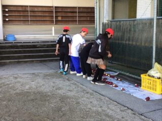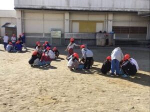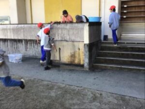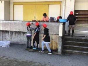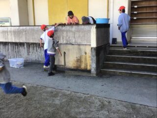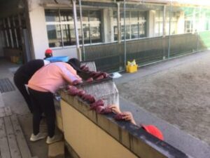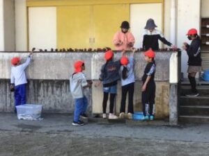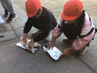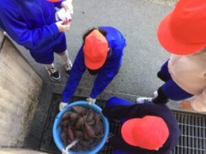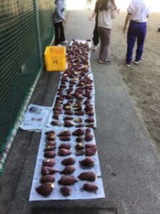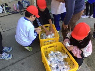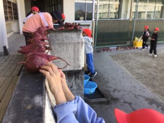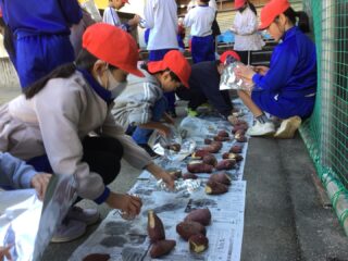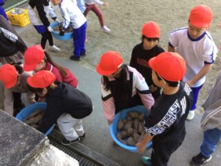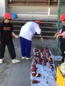 昨日2限目に、3・4年生がさつまいもを洗ってアルミホイルで包む作業をしました。