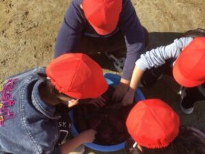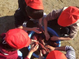 先生の取りやすい場所へいもを移してくれる子もいました。