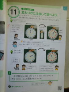 この課題に取り組むにあたっては、以前は教科書の巻末にある時計板を切り取っていましたが、右下のQRコードを読むと一瞬で出てきます。