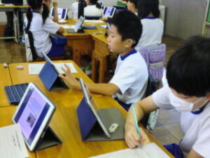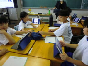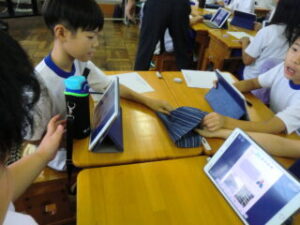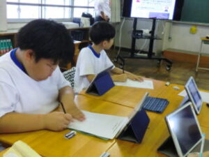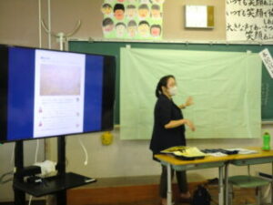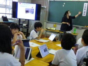 ロイロノートに配信されている資料を見ながらお話を聞きます。