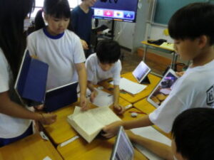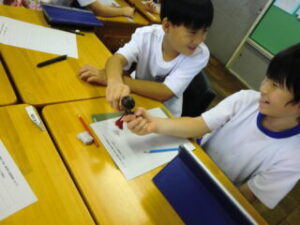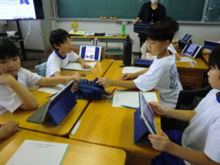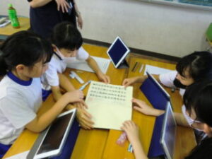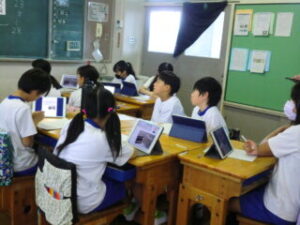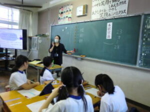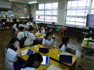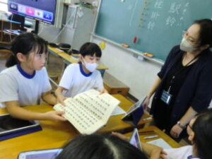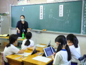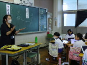 6限目は4年生で出前授業がありました。松阪の誇る偉人「本居宣長」について、本居宣長記念館の西山さんと川口さんに詳しく教えていただきました