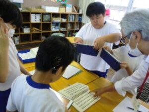 「古事記伝」の写しも見せていただきました。写真にとる子が多いです。