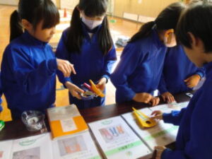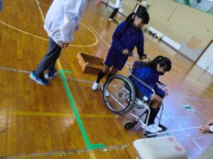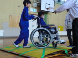 子どもたちの感想は「目の見えない人の気持ちがわかった。」「車いすを動かすのは難しかった。」「UDを作った人がアメリカ人と知った。作ってくれてよかった。」などがあげられました。