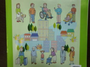 ユニバーサルデザインは、「お年寄り、体に障害のある人、妊娠している人、赤ちゃん連れの人、子ども、外国の人などいろいろな人にとって使いやすいデザインのこと」です。