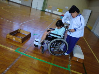 狭い幅を通るときやエレベーターの中での方向転換、傾斜のある場所での移動なども体験しました。