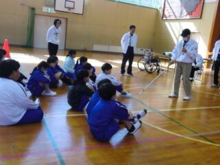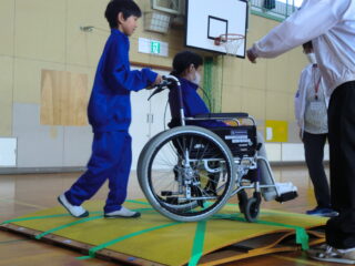 子どもたちの感想は「目の見えない人の気持ちがわかった。」「車いすを動かすのは難しかった。」「UDを作った人がアメリカ人と知った。作ってくれてよかった。」などがあげられました。