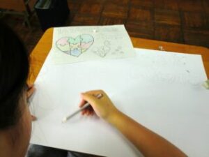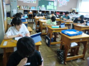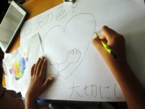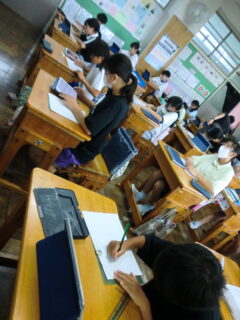 ホーム > 2025年度 / 学校活動の様子 R7〈6年〉図工 人権ポスターをつくろう 6年生が人権ポスターに取り組み始めました。 人権について話し合った後、一人ひとりが何を中心に取り上げて表現しようか、そして言葉についても考えました。 タブレットの資料箱の中に例も示してあるので、参考にしながらオリジナルを生み出します。 まずは下書き。 下書きへの色塗り。 出来た子から画用紙へ下書き。 いいアイデアが出てきた6年生。 じっくり考えていたり、もう一息でできる子は次回までに下書きを完成してくるのが課題です。がんばって取り組んでいこうね。 シェアする Twitter でシェア はてなブックマークに保存 LINE でシェア Facebook でシェア Pocket に保存 Feedly で購読 関連投稿 学校活動の様子 / 2021年度 合同練習 学校活動の様子 / 2023年度 5年 フルーツバスケット!!! 学校活動の様子 / 2021年度 地域見守り隊「赤レンジャイ」 学校活動の様子 / 2022年度 一斉下校 2024年度 / 学校活動の様子 3年 社会 中原公民館・文化センター訪問!! 学校活動の様子 / 2022年度 児童会・委員会 前の投稿 R7〈クラブ〉太鼓練習 次の投稿 R7〈5年〉社会見学