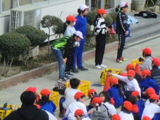 ホーム > 2025年度 / 学校活動の様子 R7年度 全校遊び(2回目) 昼休みに体育・掲示委員会が企画した「全校遊び」がありました。 2日(月)の委員会で作ったチラシをもとに、6人が各学年にお知らせをしていたので、みんな楽しみにしていました。 「バナナおに」をします。さあ、がんばるぞ! 1回目は先生たちが鬼です。 2回目は6年生が鬼です。 6年生はぼうしを白にします。先生たちは鬼に協力です。 お茶を飲んだ後、スタート! 楽しい時間は短く感じますね。温かい午後でよかったです。 後期体育・掲示委員会のみなさんありがとう。 シェアする Twitter でシェア はてなブックマークに保存 LINE でシェア Facebook でシェア Pocket に保存 Feedly で購読 関連投稿 学校活動の様子 / 2023年度 1年 国語 漢字の学習がんばってます!! 学校活動の様子 / 2022年度 看板設置(5年) 2025年度 / 学校活動の様子 R7〈4・2・5年〉食育 2025年度 / 学校活動の様子 R7年度〈5年〉第2回みえスタディ・チェック 2025年度 / 学校活動の様子 R7 〈6年〉理科 大地のつくり 学校活動の様子 / 2022年度 ALT来校 前の投稿 R7年度 雪の積もった朝の様子