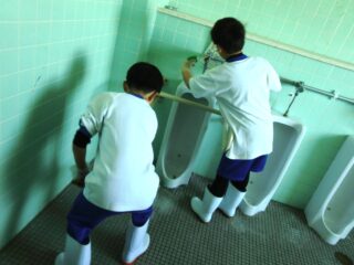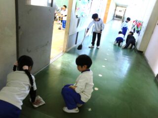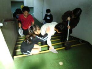 4限目は1~5年生が校内の分担した場所を掃除します。