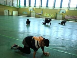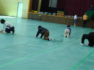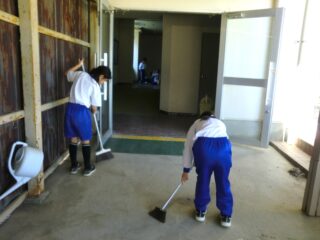 明日は卒業式。4・5年生は3限目から会場やその周りの掃除を始めました。