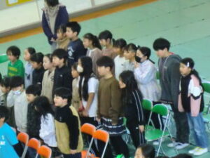 ホーム > 2025年度 / 学校活動の様子 R7年度〈全学年〉卒業式合同練習Ⅱ 今日2限目は2度目の合同練習。 背筋の伸びる6年生。 在校生は友だちの言葉まで全文覚えている子もいます。 「声かれかれや~」一所懸命な姿がうれしいです。 卒業式は6年間の最後の授業。6年生のためにがんばっています。 6年生も、ここをもっと練習したら?と提案できるほど全体が見えています。 長文もしっかり頭に入っています。 落ち着いて。ゆっくりぐらいがちょうどいい。 「♩せかいがひとつになるまで~♩ずっと手をつないでいよう~」 みんなで最高の卒業式にしましょう! シェアする Twitter でシェア はてなブックマークに保存 LINE でシェア Facebook でシェア Pocket に保存 Feedly で購読 関連投稿 2025年度 / 学校活動の様子 R7 第1回通学団集会 学校活動の様子 / 2023年度 全校 遠足!! さあ、出発! 2024年度 / 学校活動の様子 4年 体育 スタートダッシュの練習!! 学校活動の様子 / 2022年度 修学旅行② 2024年度 / 学校活動の様子 5年 算数 三角形の面積を求めよう! 地域活動 / 2024年度 / 学校活動の様子 太鼓クラブ 例祭に向けて練習中!! 前の投稿 R7年度〈6年〉卒業式練習と〈全学年〉合同練習