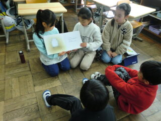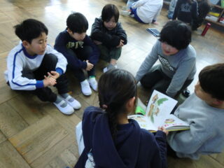 5限目に、3年生が1年生に読み聞かせをしに来てくれました。
