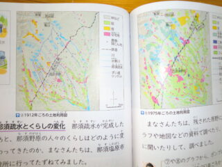 1912年(大正)と1975年(昭和)の地図を見比べて、どのように変わったか調べていました。