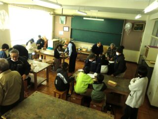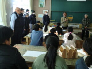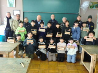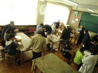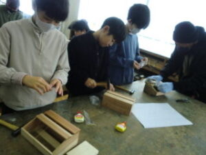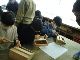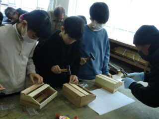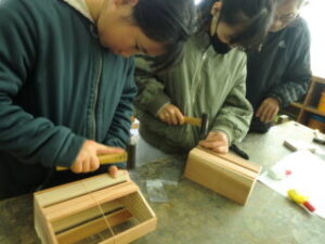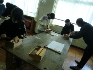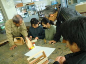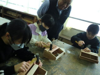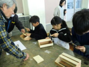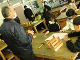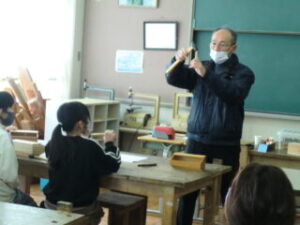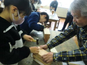 1・2限目に長寿会の方々にご指導いただき、木工教室が開かれました。
