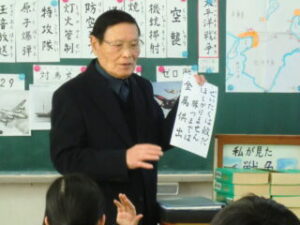 6年生からは「焼夷弾で燃えたらどのくらいで消せますか」「特攻隊で生き残った人はいますか」「バッタ、イタドリ以外にどんなものを食べていましたか」といった質問が出ました。