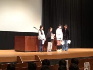 ホーム > 地域活動 / 2025年度 / 学校活動の様子 R7年度 嬉野支部青少年リーダー研修会 2月7日(土)にふるさと会館で松阪市青少年育成市民会議嬉野支部の青少年リーダー研修会がありました。 絵画・ポスターや標語の入賞者の表彰の後、ジュニアリーダーの活動と代表育成会の発表がありました。 5つの代表育成会のうち、中原地区は2番目です。 5年生の代表者が、稲作としめ縄作りを地域の方々にご指導いただきながら行った様子を伝えました。 落ち着いてしっかり話せました。 ジュニアリーダーの6年生2人も司会をがんばってくれました。 会場から見守っていただいた皆さま、ありがとうございました。 シェアする Twitter でシェア はてなブックマークに保存 LINE でシェア Facebook でシェア Pocket に保存 Feedly で購読 関連投稿 2024年度 / 学校活動の様子 123年前の写真!! 学校活動の様子 / 2023年度 脳トレ!? プレゼント 8.9 学校活動の様子 / 2022年度 児童会・委員会 学校活動の様子 3年 理科 昆虫のかんさつ 2024年度 / 学校活動の様子 6年 社会 鎖国のもとでの海外との交流は・・・? 学校活動の様子 / 2022年度 戦争体験(6年) 前の投稿 R7年度 〈4年・新入学予定児〉一日入学 次の投稿 R7年度 雪の積もった朝の様子