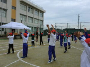 ホーム > 2025年度 / 学校活動の様子 R7運動会全体練習③ 1限目に運動会の全体練習③をしました。 2年生は2回目になります。周りの様子をよく見てがんばりました。 体操座り、きをつけ、礼、休め、膝を上げ手を振る行進…上手です 児童会会長あいさつ、ラジオ体操。会長も体育委員も大役です。 駆け足、その場駆け足、座って待つ…上手です 児童・応援係が応援をリードしてくれます。みんなで心を一つにしよう! 他にも開会式では選手宣誓、体育委員の諸注意、閉会式では参加賞授与(各学年の代表がPTA会長より受け取る)、児童会副会長あいさつがあります。 運動会は11月8日(土)。体の調子を整えて絶好調でむかえられますように。 シェアする Twitter でシェア はてなブックマークに保存 LINE でシェア Facebook でシェア Pocket に保存 Feedly で購読 関連投稿 学校活動の様子 / 2022年度 野外活動⑥ 2024年度 / 学校活動の様子 クラブが始まりました!! 学校活動の様子 / 2021年度 ワックスがけ 学校活動の様子 / 2021年度 和食の日 学校活動の様子 / 2021年度 DQ World(5年) 学校活動の様子 / 2023年度 1年 生活科 シャボン玉 と~ん~だ~!! 前の投稿 R7〈1~4年〉さつまいも堀り 次の投稿 R7〈2年〉算数 5のだんの九九