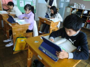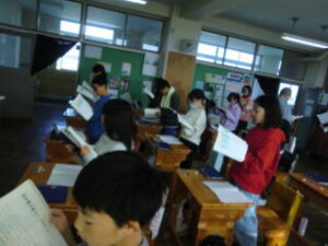 今日は2限目に6年生、4限目に5年生の国語を先生たちが見にみえました。