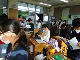 今日は2限目に6年生、4限目に5年生の国語を先生たちが見にみえました。